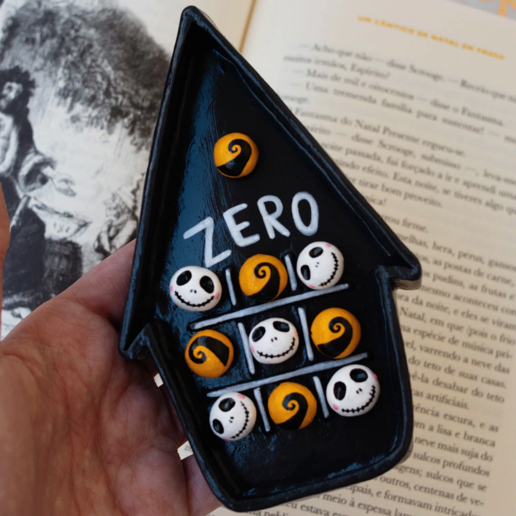 Jogo da velha de cerâmica fria. Base: 14x8cm. Peças: de 1 a 2cm.